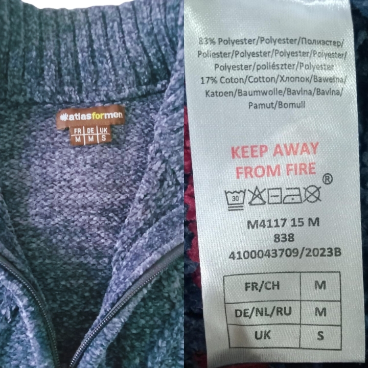 Fabrics: 83% Polyester, 17% Cotton