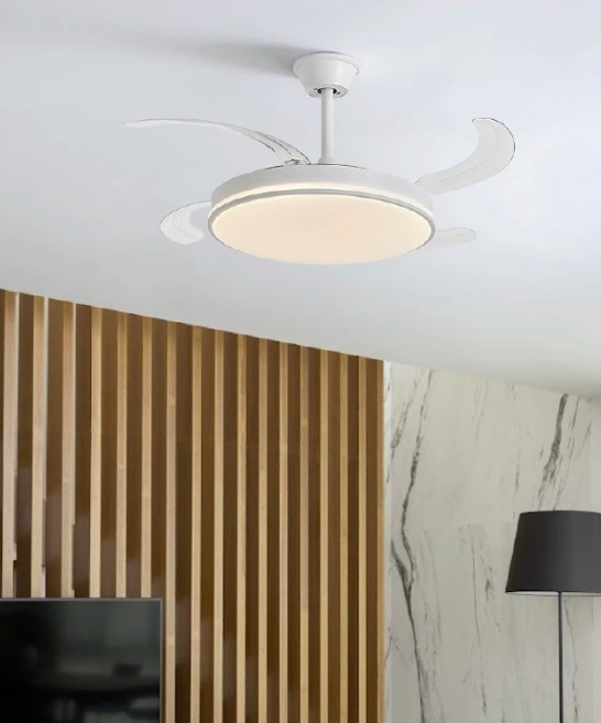 WHITE RETRACTABLE BLADE FAN, 6 SPEEDS, 3 COLOR CHANGE, DC MOTOR, REMOTE ...