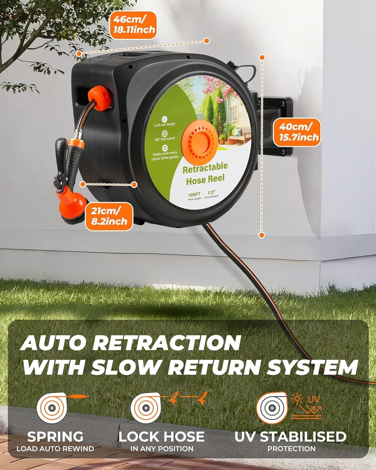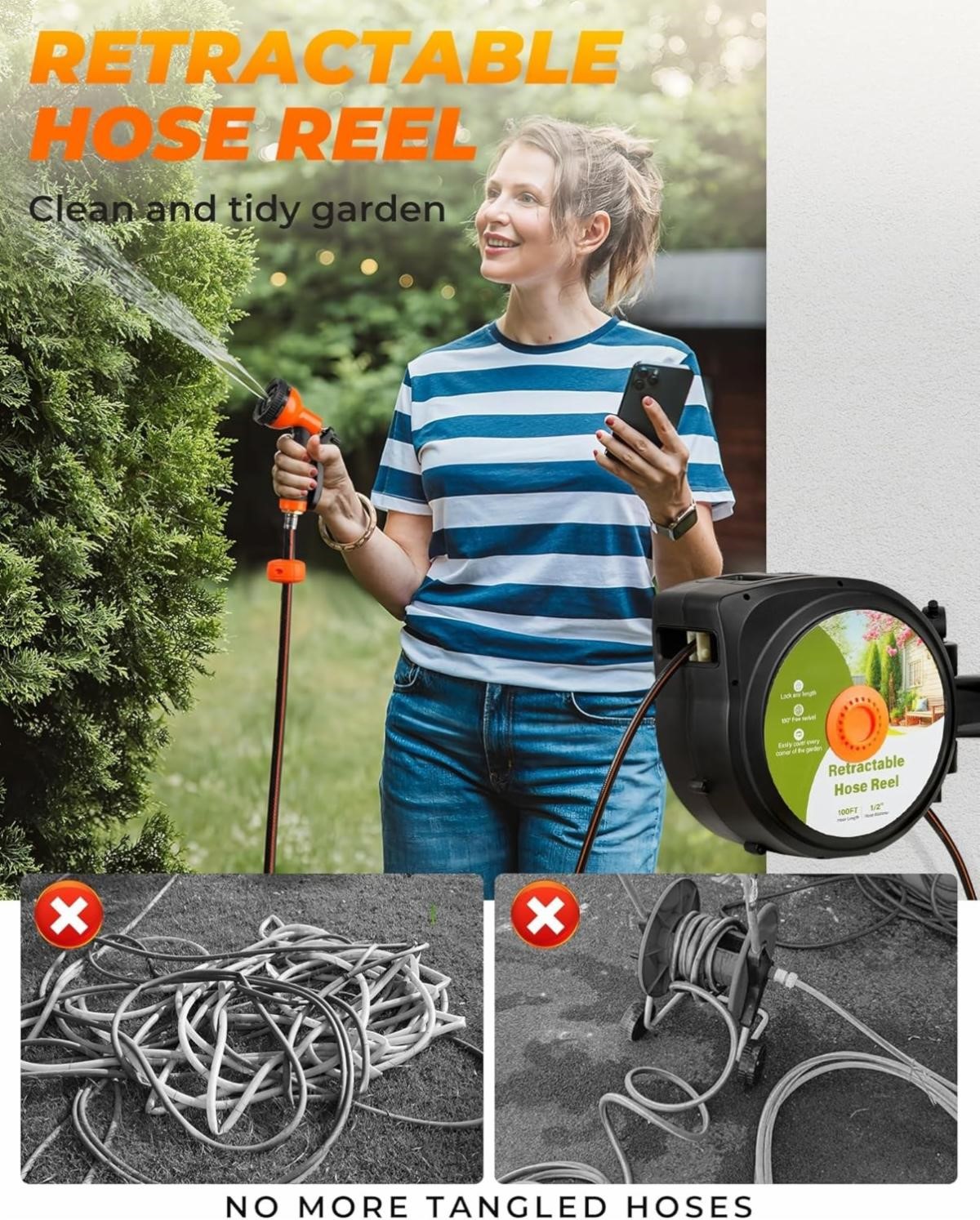 100 ft Retractable Garden Hose Reel