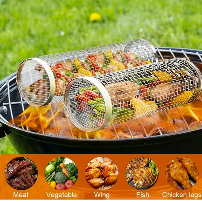 2 Pack BBQ Rolling Grill Basket USA