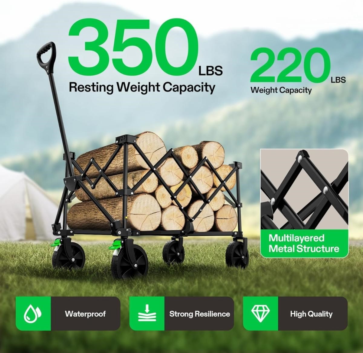 350 lb. Load-Bearing Outdoor Utility Cart with Silent Universal Wheels