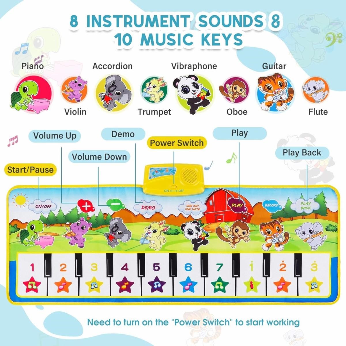 SANMERSEN 8 Instrument Sounds Piano Mat